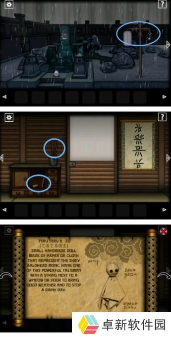 4.下一个场景小伙伴们挂上【晴天娃娃】可以使雨停掉,然后上【香】并点燃的话就可以获得一个【硬币】,小伙伴们要注意了,游戏中出现怪物会死亡;