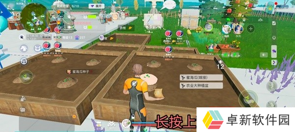 在道具栏上滑找到种子,之后拿在手里种植,每块地可种植四颗种子。